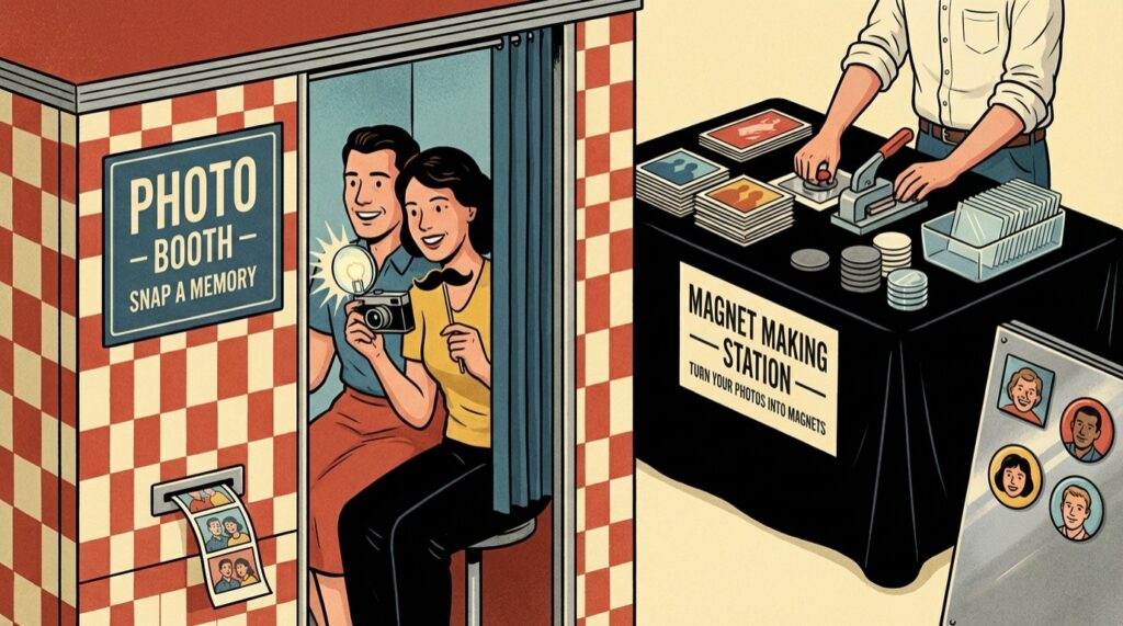 Fotomagnesy to atrakcja, która zawsze wzbudza zainteresowanie i sprawia, że goście chętnie wracają do stanowiska, aby zrobić kolejne zdjęcia.